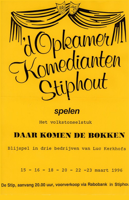 Welkom in het rijke verleden van de Opkamerkomedianten. Hieronder vindt u een overzicht van alle toneelstukken die wij in de afgelopen jaren op de planken hebben gebracht. Geniet van een reis terug in de tijd.